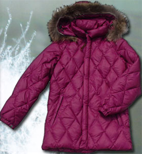 タイトなシルエット。ラクーンファー付きのフードは取り外し可能