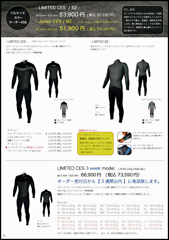 「LIMITED model」はチェストジップ仕様の「CES」とバックジップ仕様の「BZ」から